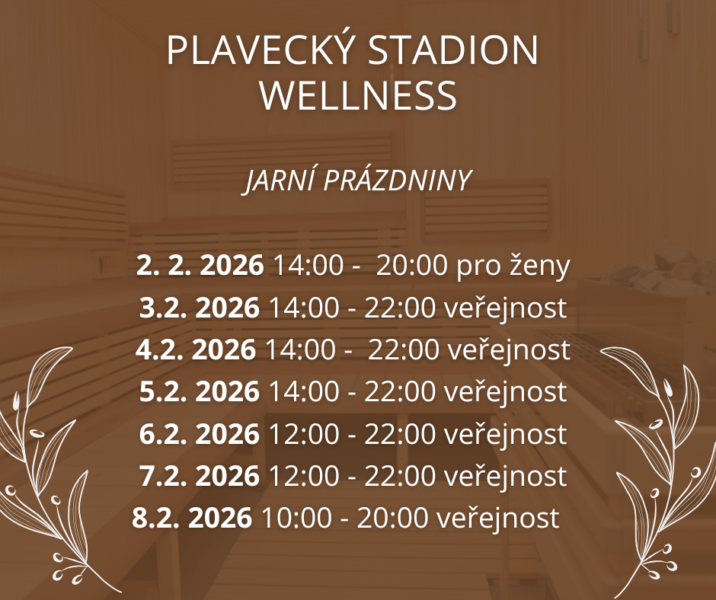 O jarních prázdninách vás srdečně zveme do wellness na Plaveckém stadionu. Přijďte si odpočinout, načerpat energii a dopřát si chvíli jen pro sebe.
